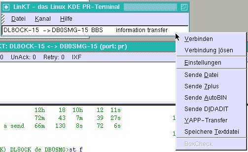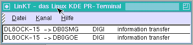Auf DB0SMG ist das bekannte Programm LinKT installiert. Dieses Programm arbeitet wie ein "Hostmode"-Programm und man kann damit Packet-Radio Verbindungen führen.